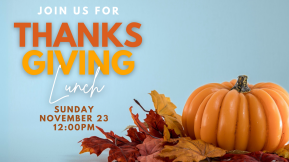 Celebrate Thanksgiving with your Covenant family on Sunday, November 23 at 12:00pm in the Fellowship Hall. Join us for a time of fellowship and opportunity to offer thanks to...November 23, 2025Thanksgiving Lunch 2025Location: Covenant Presbyterian Church Fellowship Hall