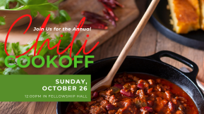 The Annual Chili Cookoff will be held after morning worship on Sunday, October 26 at 12:00pm in the Fellowship Hall. Bring a pot of your favorite homemade chili or a...October 26, 2025Annual Chili CookoffLocation: Covenant Presbyterian Church Fellowship Hall